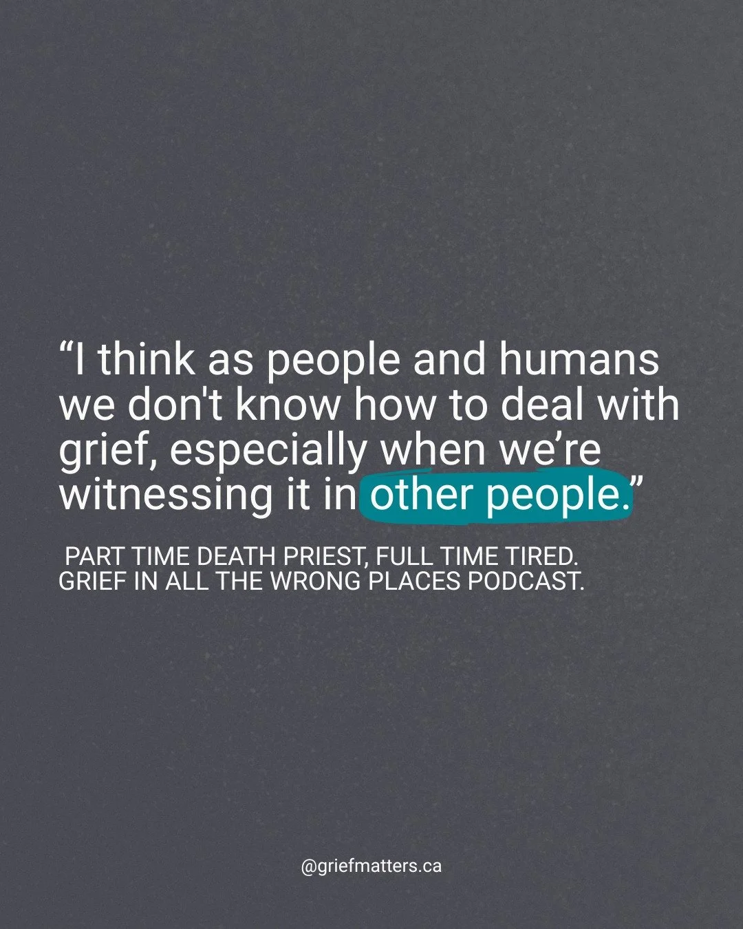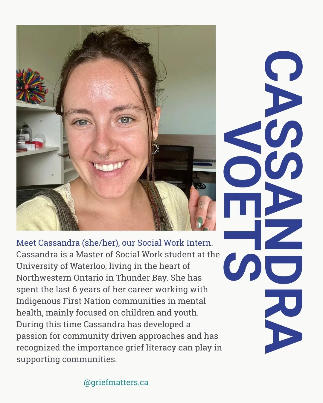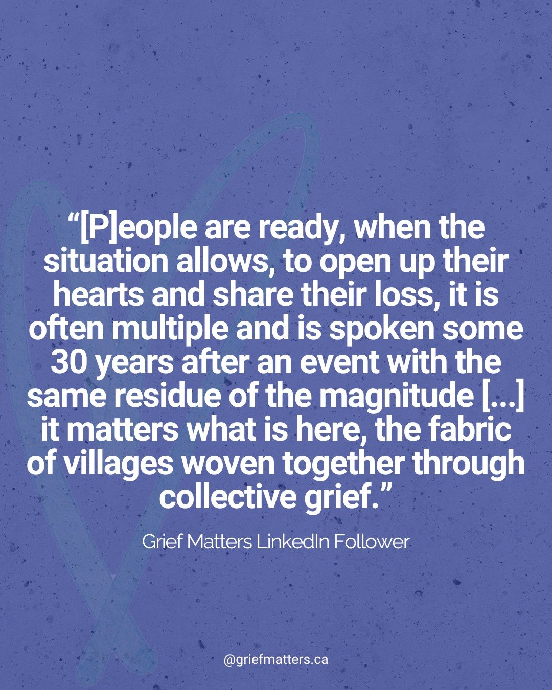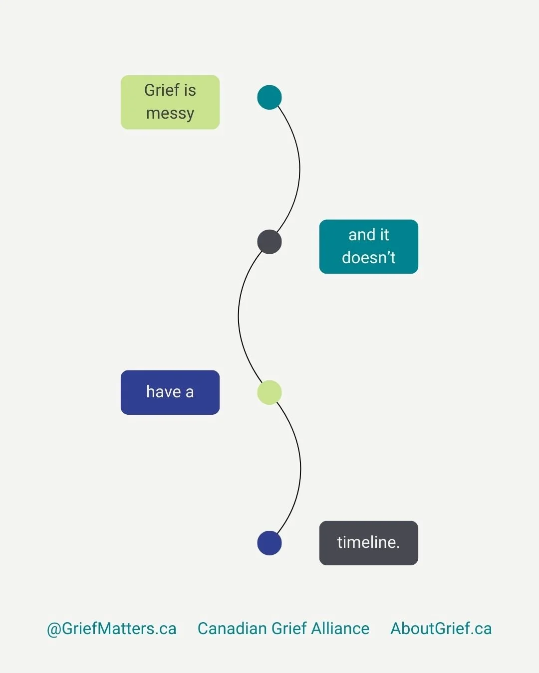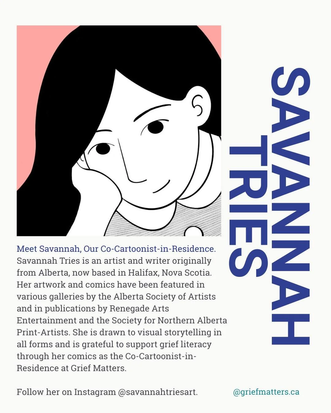 Grief Matters started in 2023 from a passion project. Our team has grown to include multiple identities, geographies, skills, and experiences. We are: community members, academics, artists, social media experts, Nova Scotians, Ontarians, family members, caregivers, and grievers. We bring together a unique balance of perspectives to think passionately and critically about what grief is and how grief should be integrated into our many communities. We want to keep learning through everything Grief Matters does.
