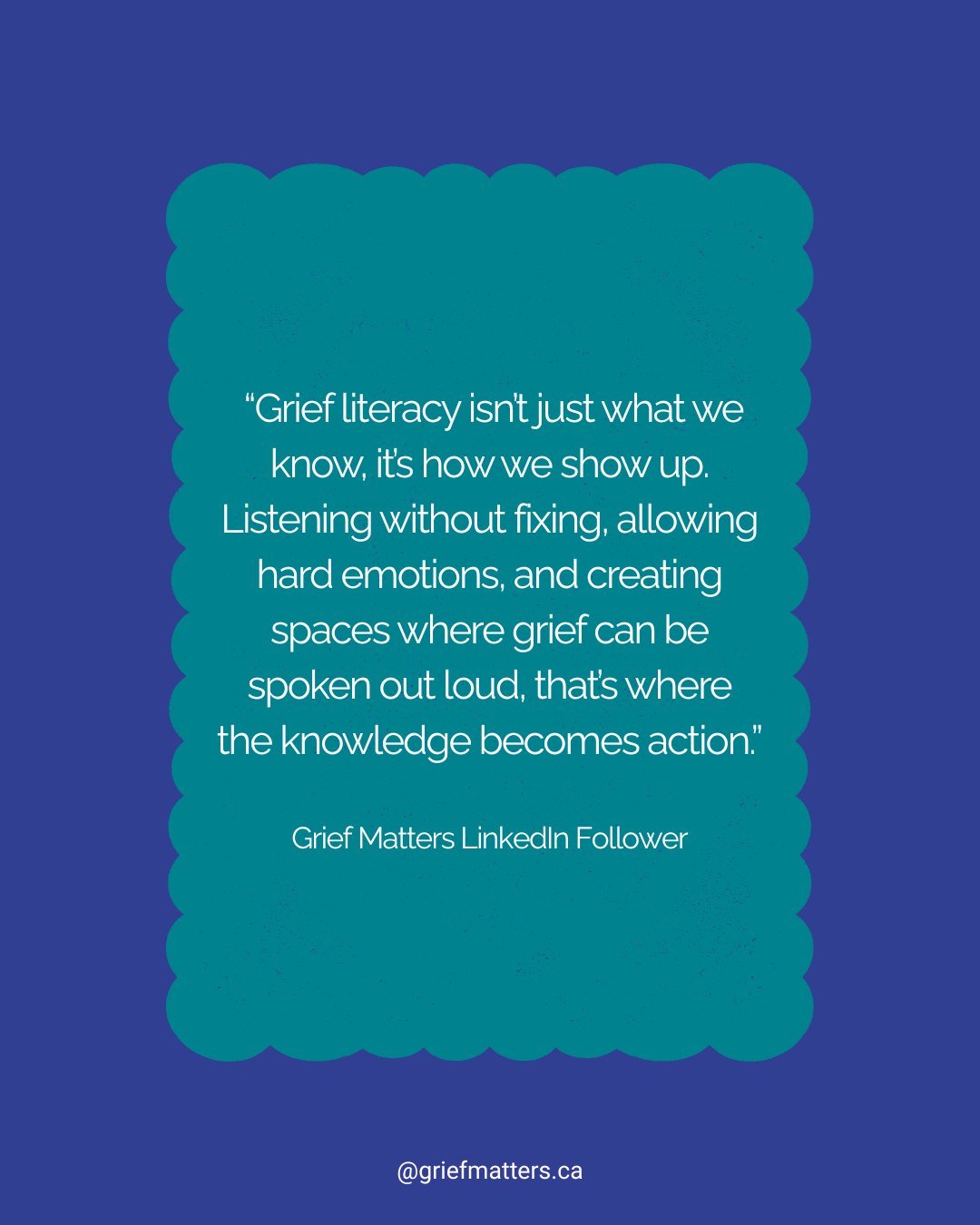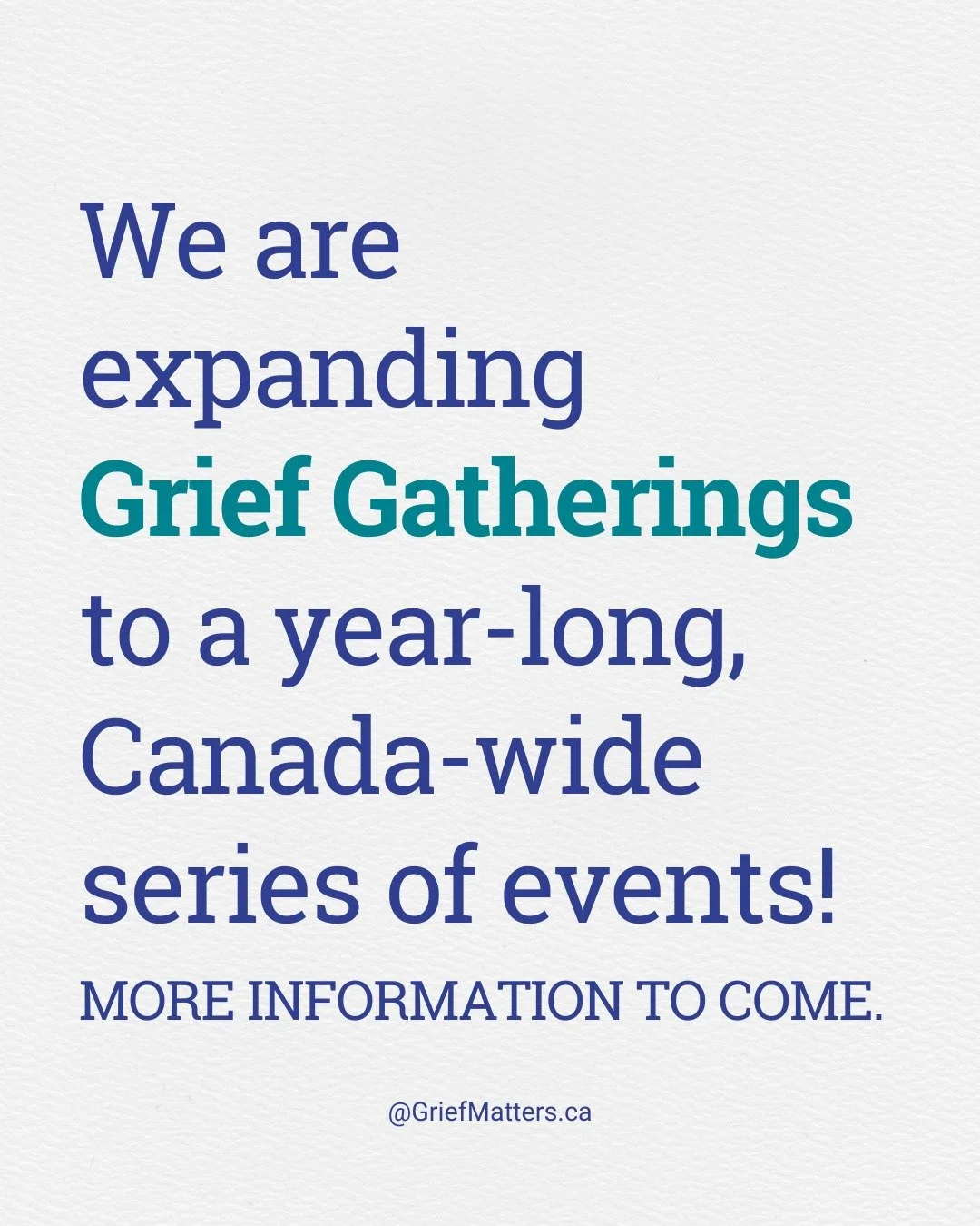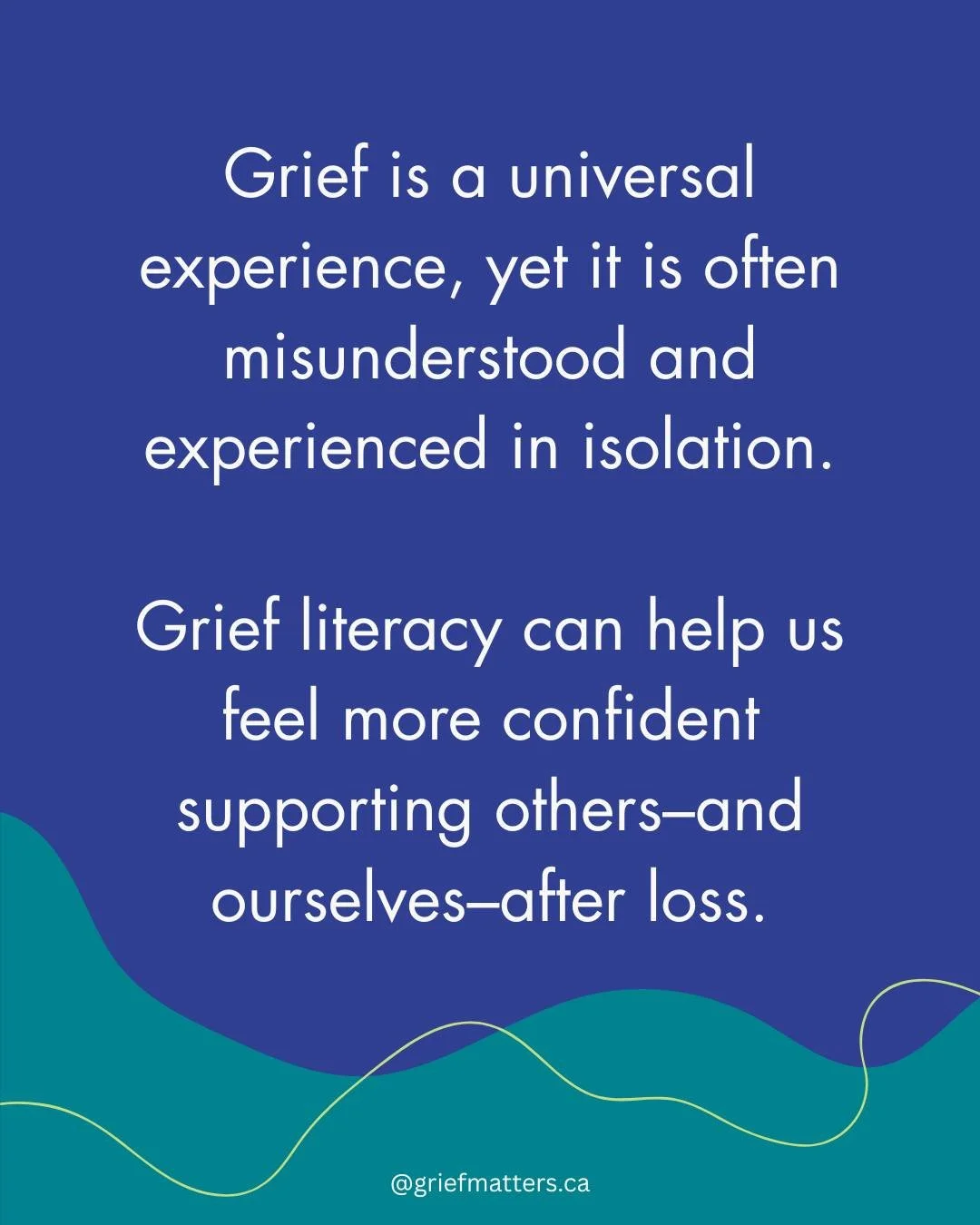 Grief Matters is a Canadian organization working to help all of us - from individuals to all of society - to better understand and make room for grief, through creative, community-based activities. All grief is welcome here. Come learn with us!