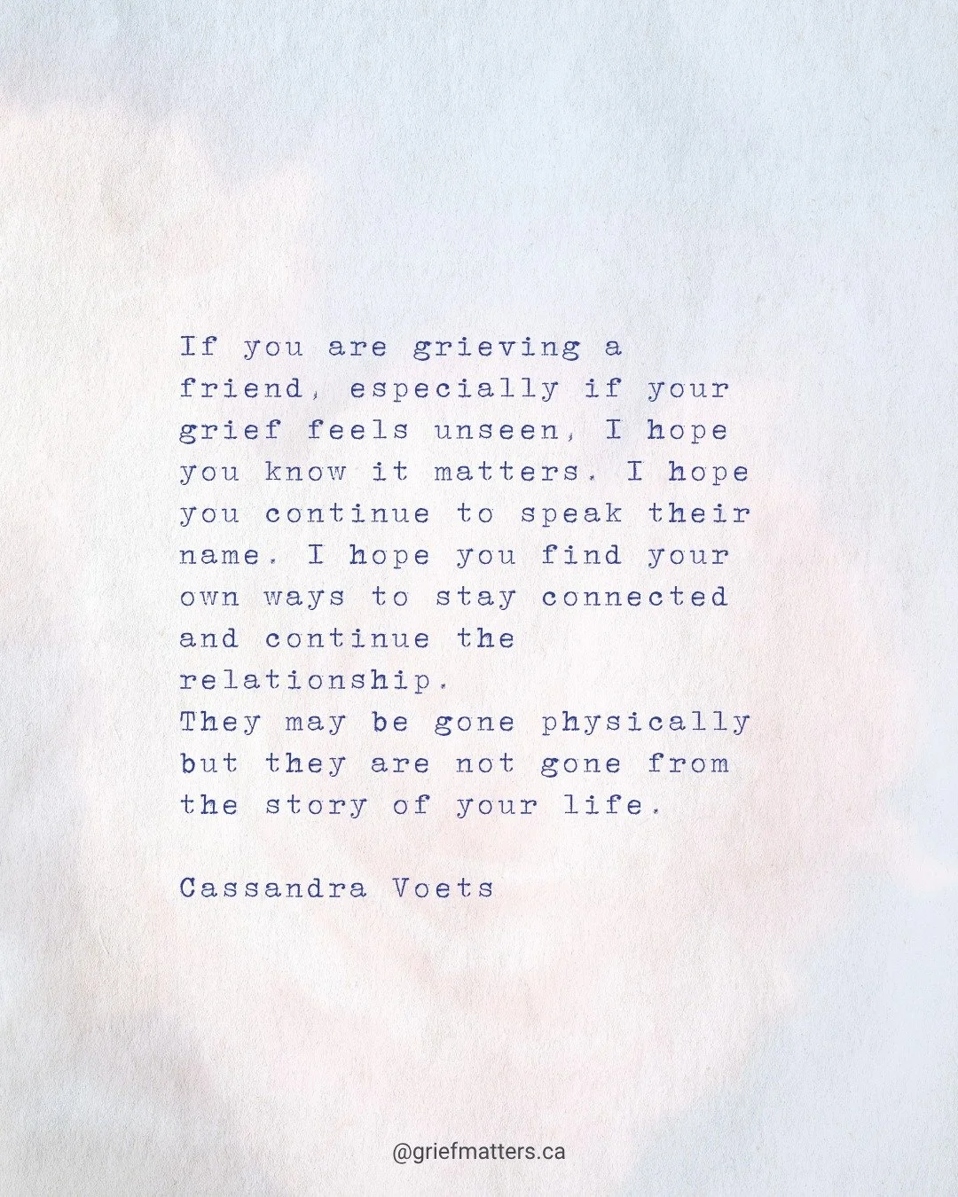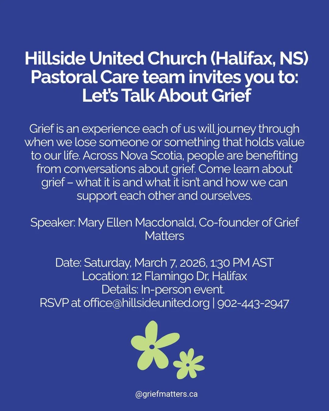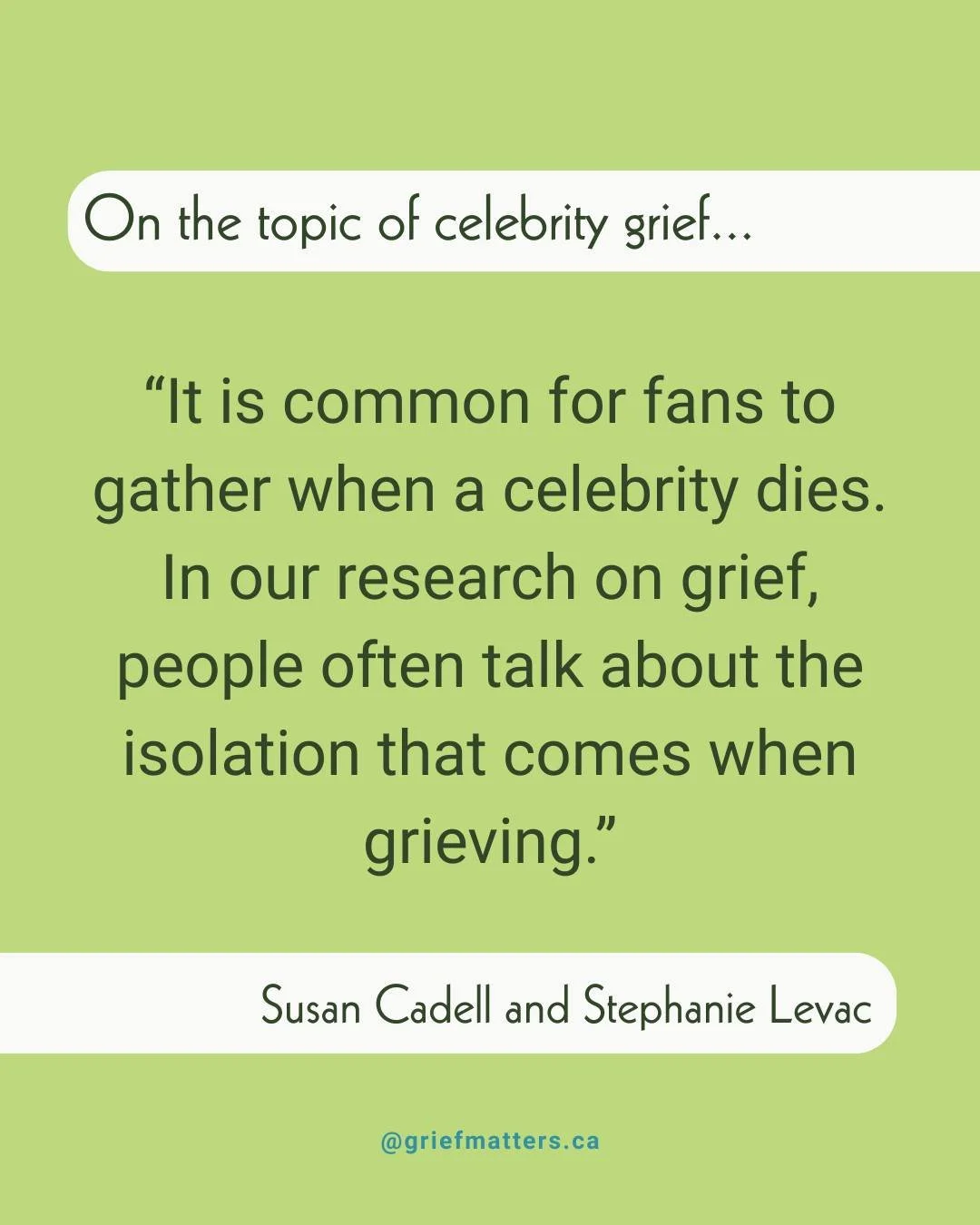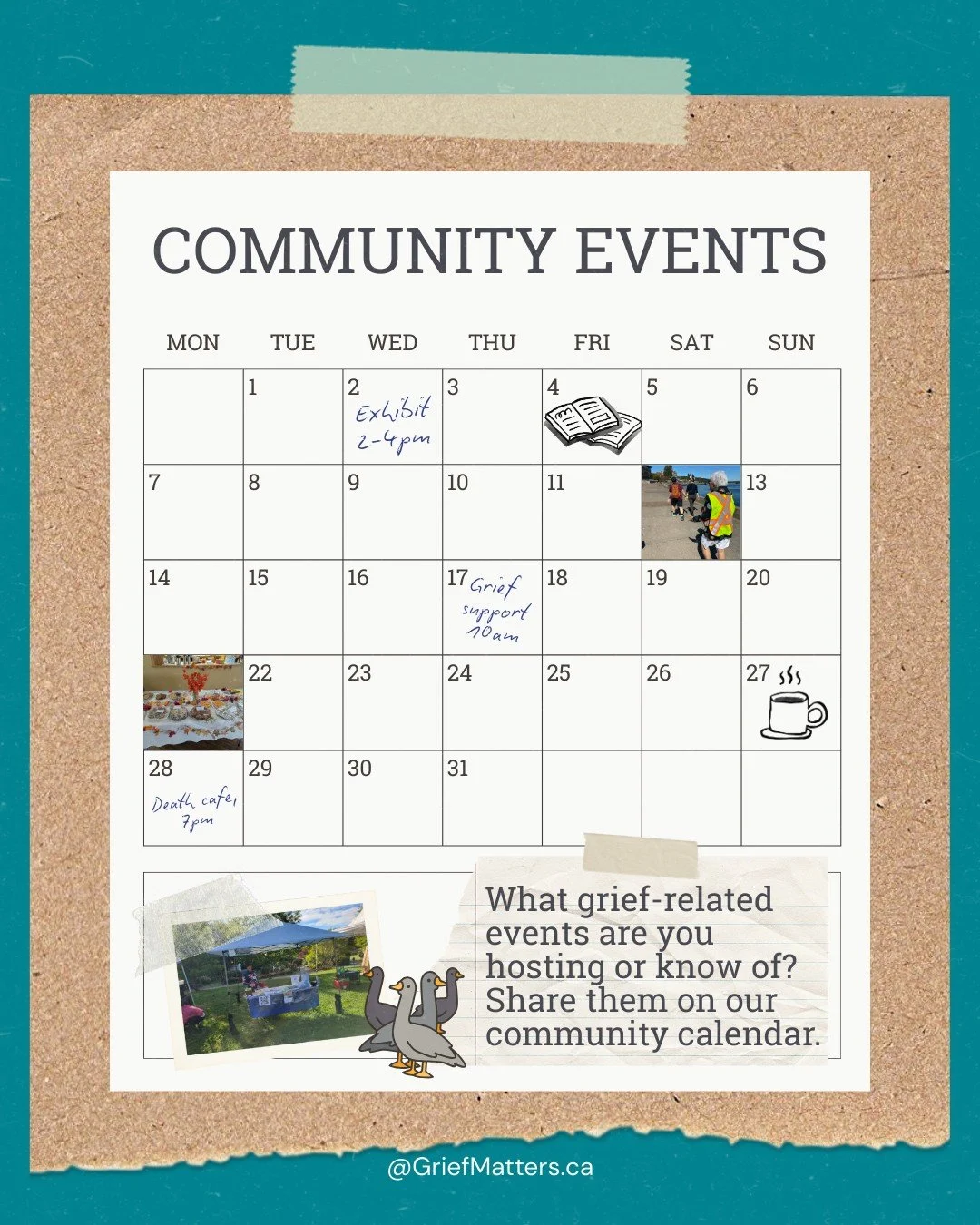 Grief Matters is a Canadian organization working to help all of us - from individuals to all of society - to better understand and make room for grief, through creative, community-based activities. All grief is welcome here. Come learn with us!
