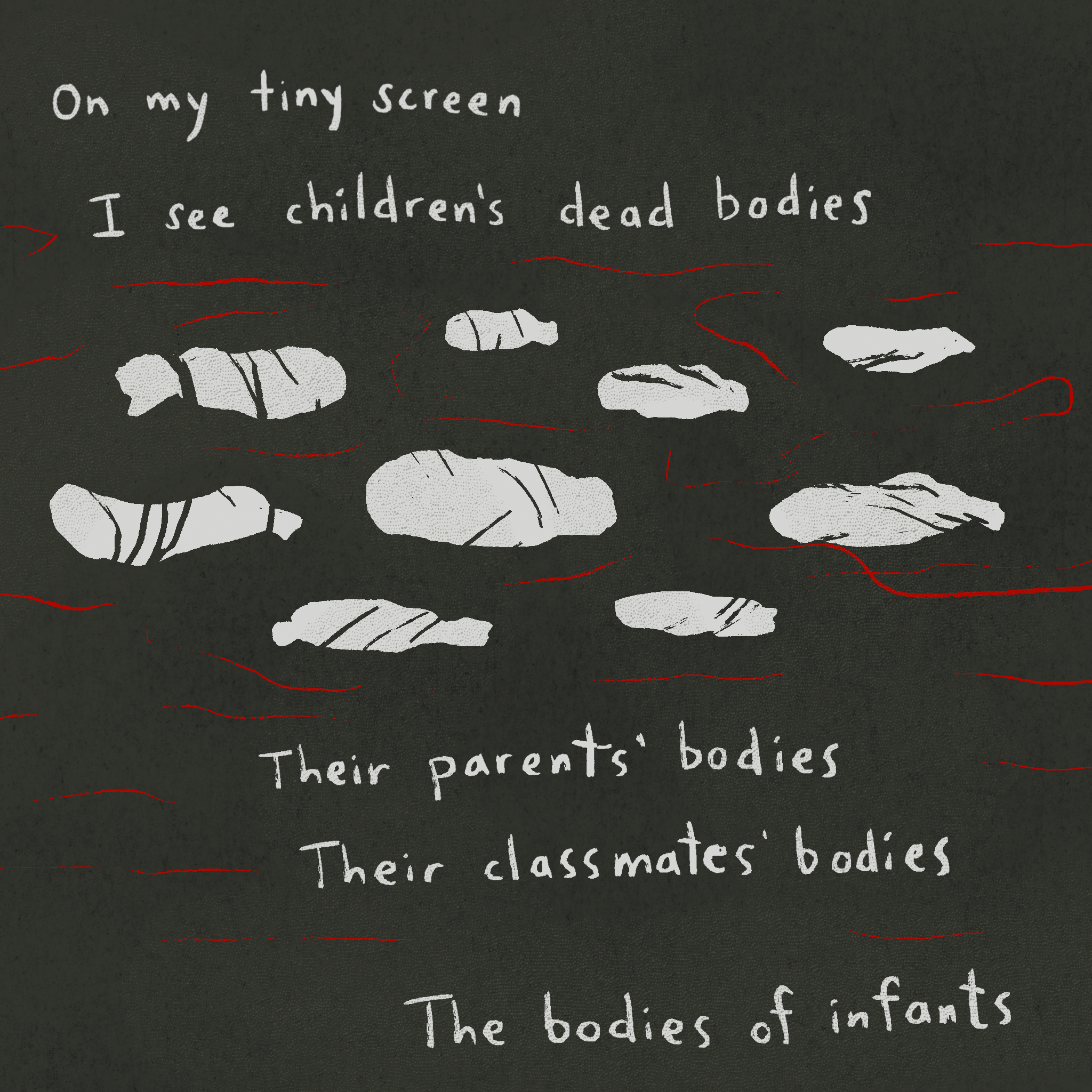 "Atrocities Glowing in my Hand arose from my relationship around social media and the ongoing genocide against the Palestinian people in Gaza."