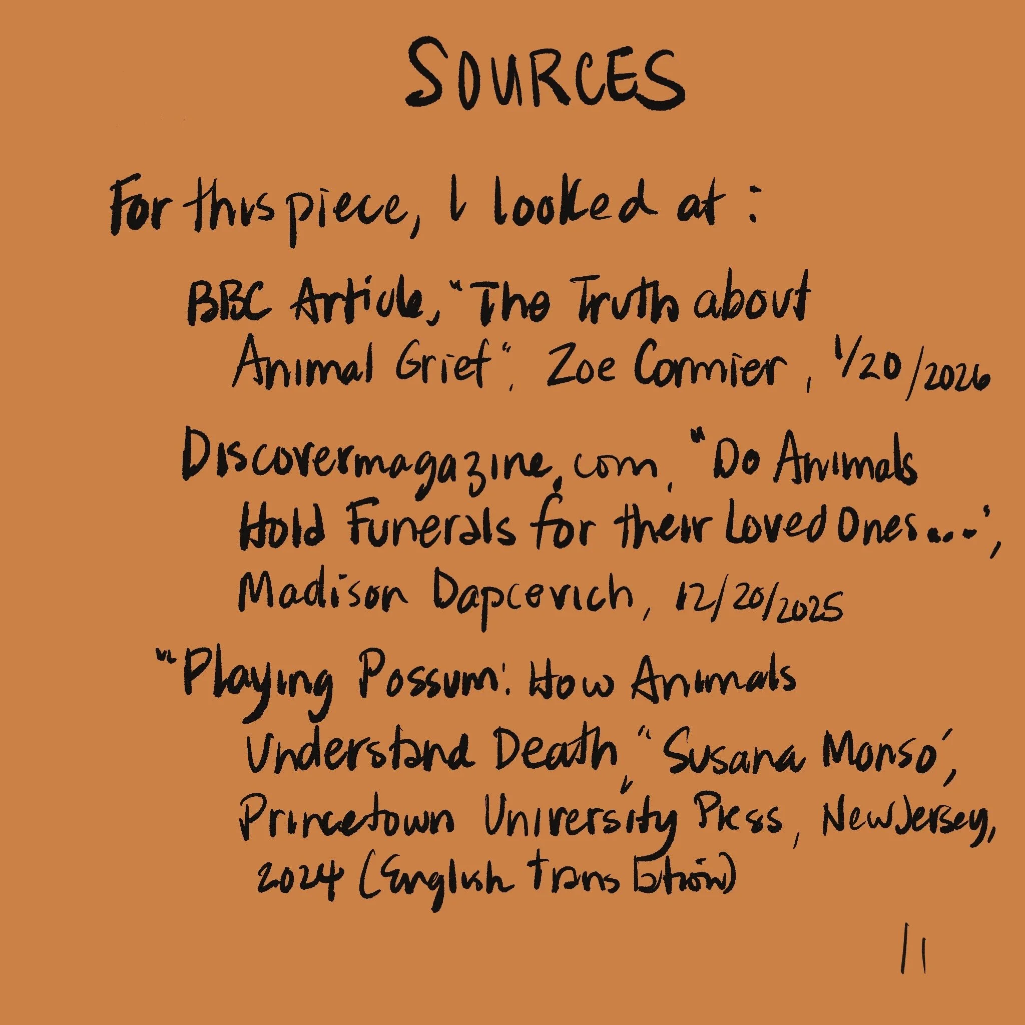 We had a lot of response from people touched by last month's cartoon about animals deeply grieving each other. This month, we look at what researchers have discovered about grief among animals. As one researcher says, "We're far from the only animals aware of mortality."