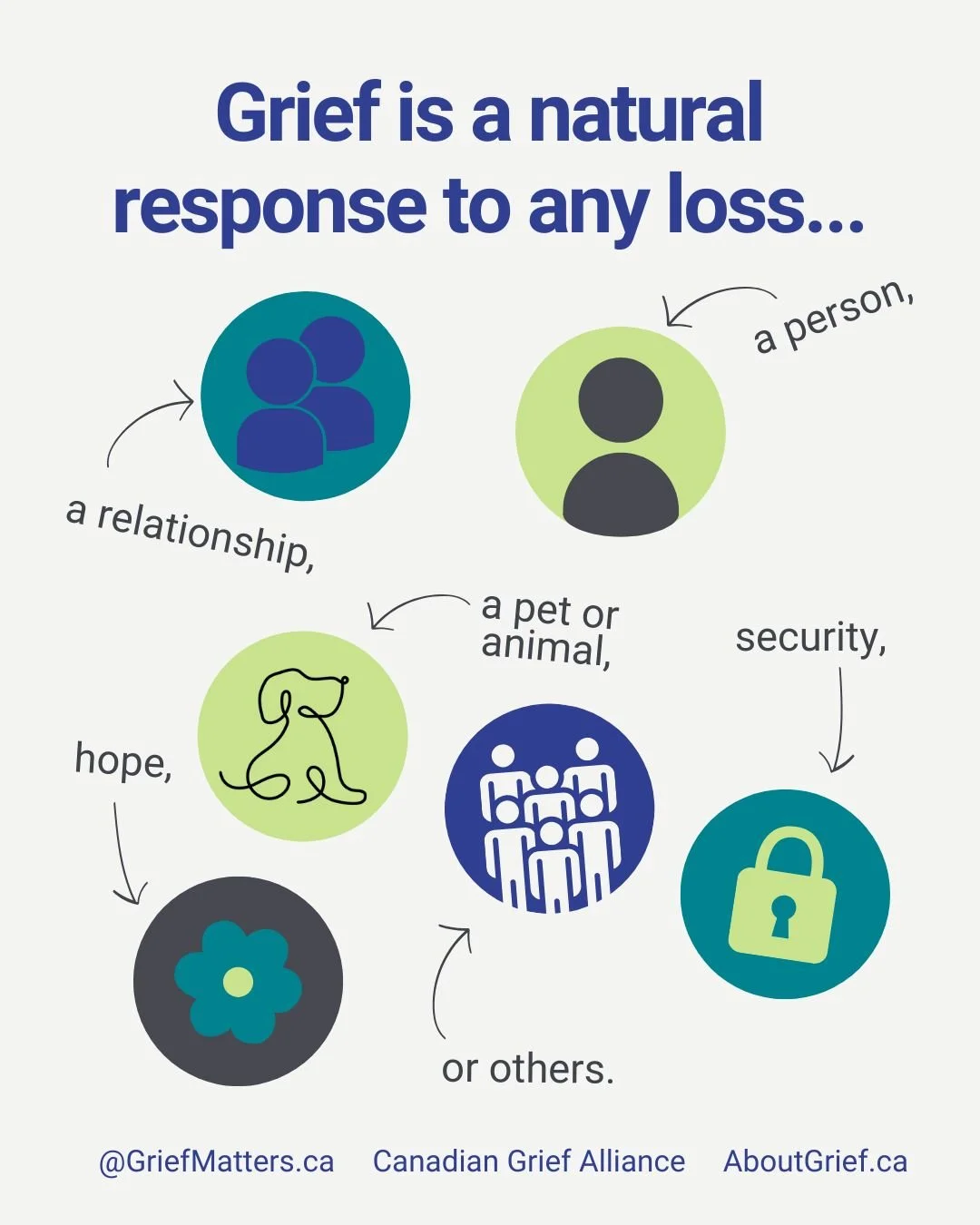 Grief Matters is a Canadian organization working to help all of us - from individuals to all of society - to better understand and make room for grief, through creative, community-based activities. All grief is welcome here. Come learn with us!